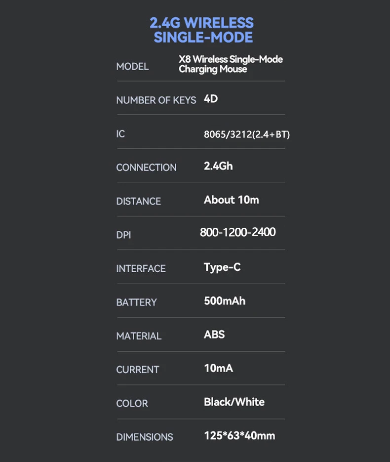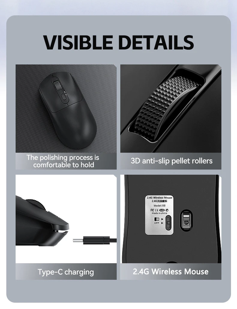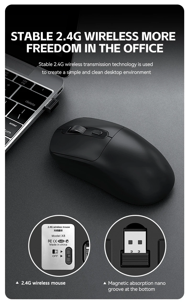 Mouse Sem Fio Warvank X8 – Recarregável USB-C 500mAh