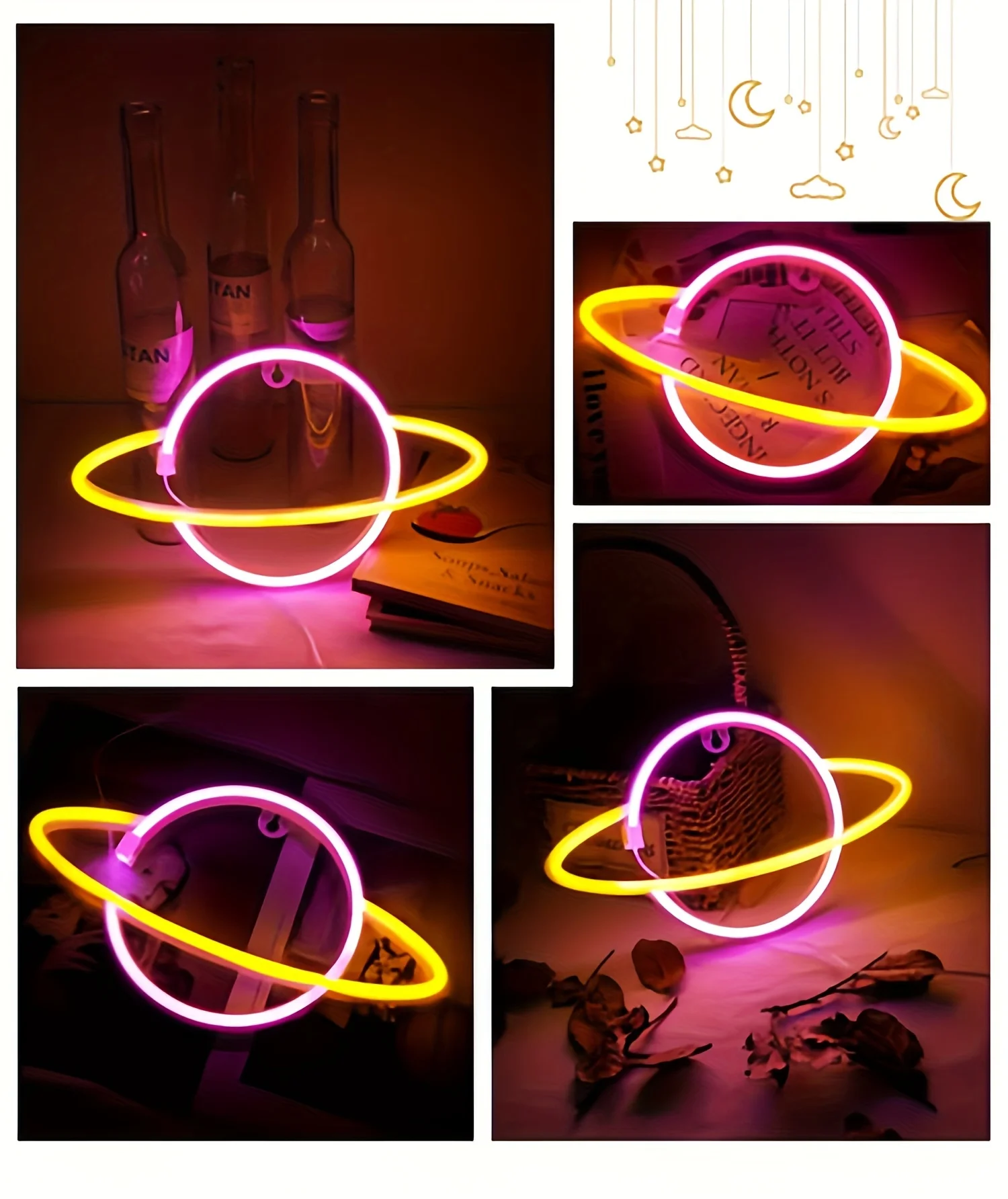Luminária Neon Planeta – Decoração Criativa para Quarto e Festas